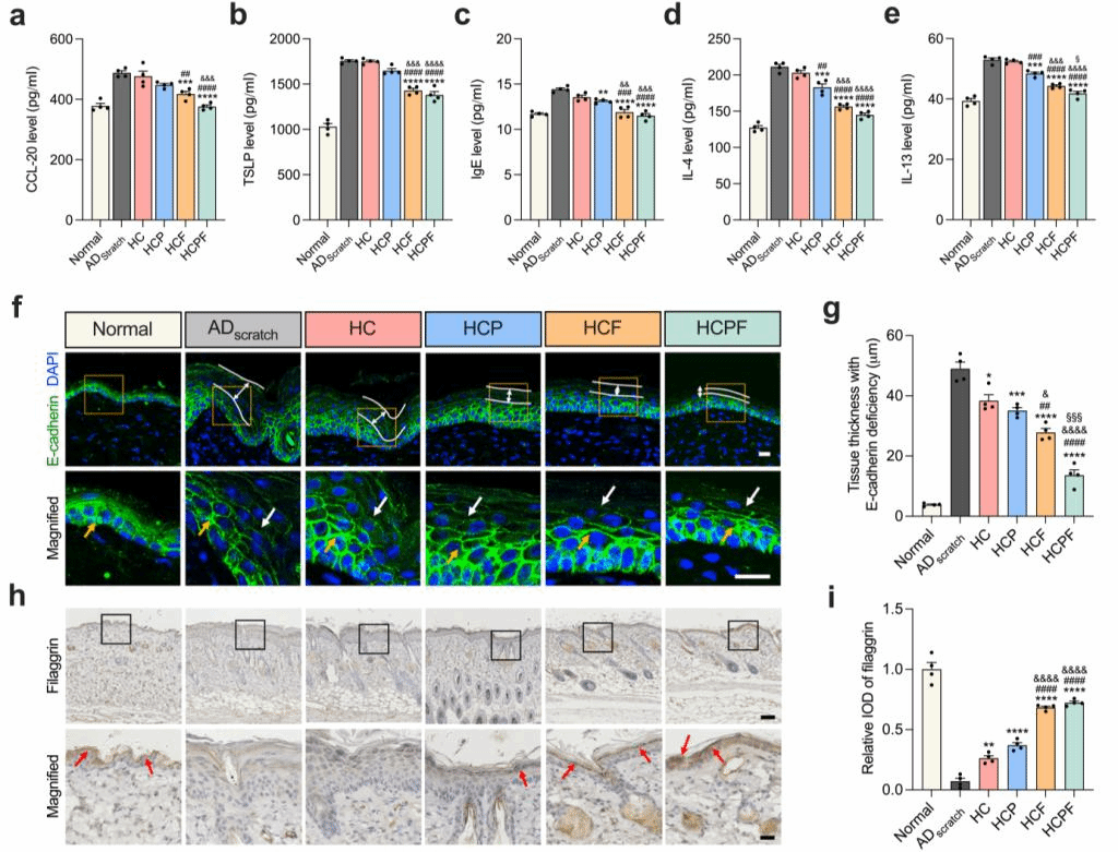 图2:力-化协同治疗的HCPF水凝胶敷料可以缓解AD症状