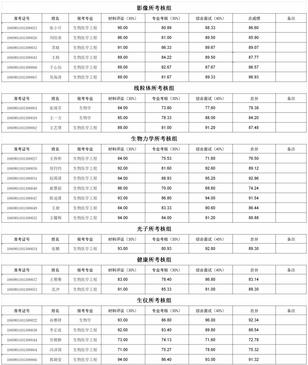 生命学院2021年“申请-考核”制博士研究生招生考核成绩