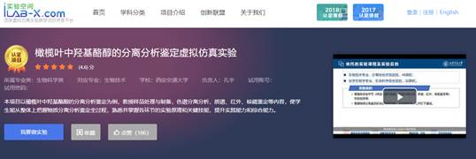 National Project of Virtual Simulation Experiment ——Separation, identification and purification of hydroxytyrosol from olive leaves with virtual simulation experiment