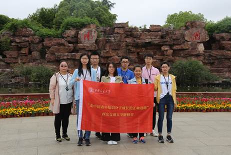 5月15日上午,学生党员代表来到上海交通大学,和交通大学校门合影,重温学校西迁之路。