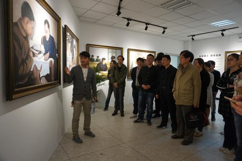 油画展设立在西迁广场展厅,主创画家李伟声情并茂地向我们一一介绍了这些油画的创作过程和背后的西迁故事。画展以“西迁精神”为主题,共展出了27幅纪实性油画作品,艺术地再现了交大西迁的历史瞬间,这也是我校122年校庆的献礼之作。分仪所的老师和同学们认真仔细地阅读了油画的讲解铭牌,对这段历史也有了重新的认识,大家纷纷表示深受感动。