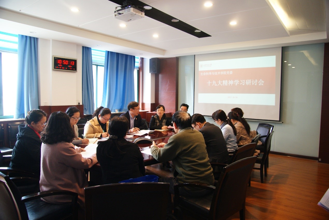 为了第一时间学习领会习近平新时代中国特色社会主义思想,把师生的思想统一到十九大精神上来,10月20日上午,生命学院党委组织召开十九大精神学习研讨会,学院党政领导班子成员、分党委委员、系所中心负责人、党支部书记及学生代表参会。会议由分党委书记刘茹主持。