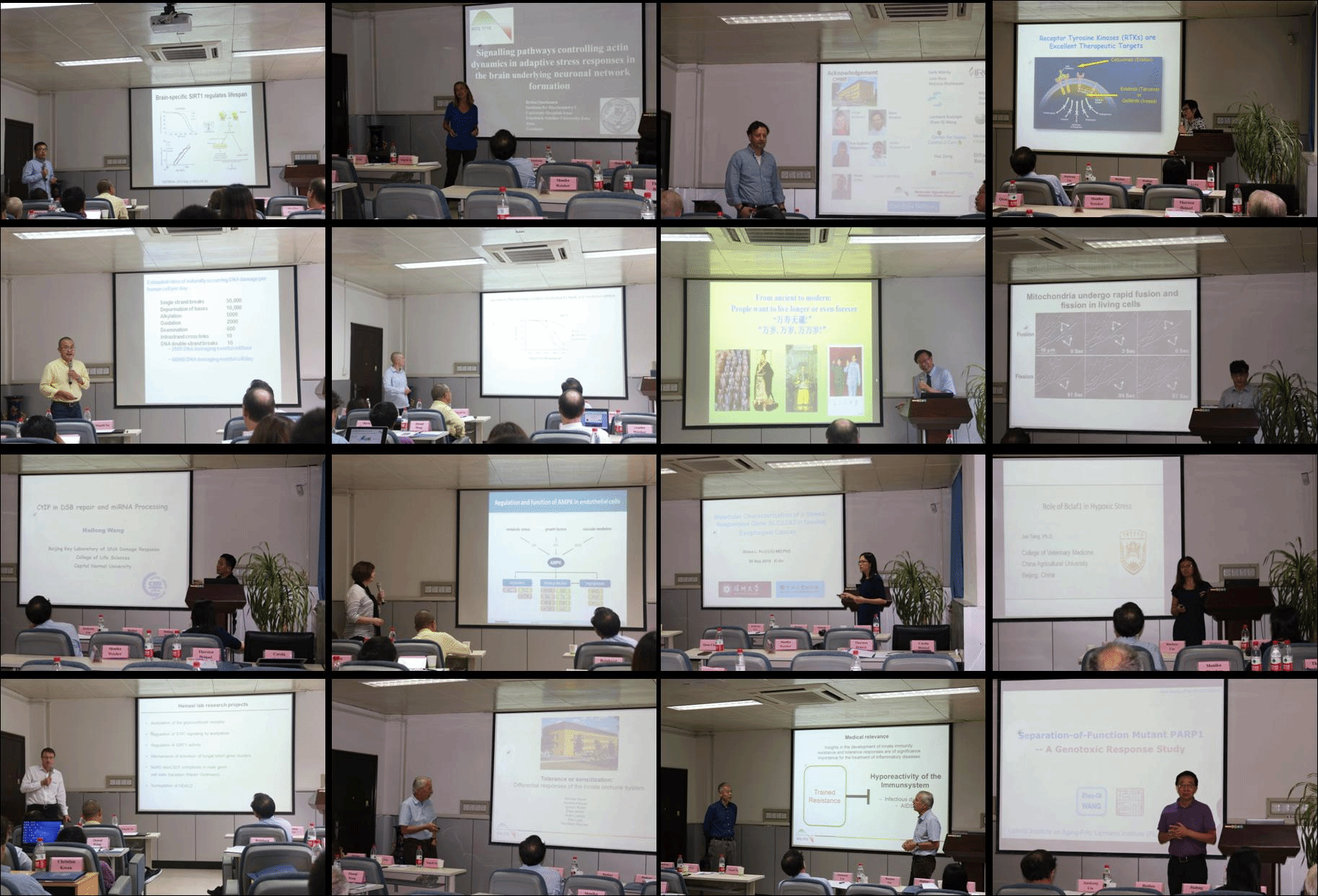 9月20日,第六届胁迫应答分子谱国际研讨会在生命学院308报告厅顺利召开。胁迫应答分子谱系列国际研讨会是基于德国研究联合会(DFG)对耶拿大学资助的研究培训集团项目RTG1715、DNA损伤应答北京市重点实验室和北京细胞生物学会对胁迫应答研究的共同兴趣而于2010年创立的。刘健康院长以及来自德国耶拿大学、深圳大学、中科院、首都师范大学的十多名专家学者做了专题报告,校内外师生近50余人参加了研讨会。