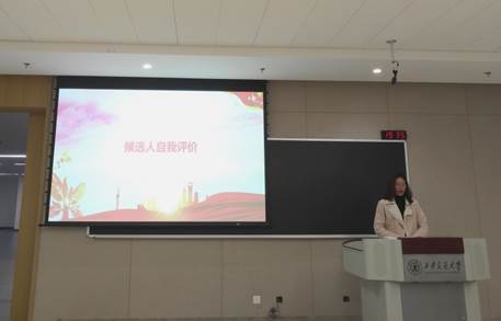 首先陶怡核实了参加“推优”大会的到场人数,确认符合评选条件后介绍了“推优”的具体条件,作为同学们投票的依据:政治思想上先进、道德品行上先进、发挥作用上先进、遵守纪律上先进,并公布了参加推优评选的名单。