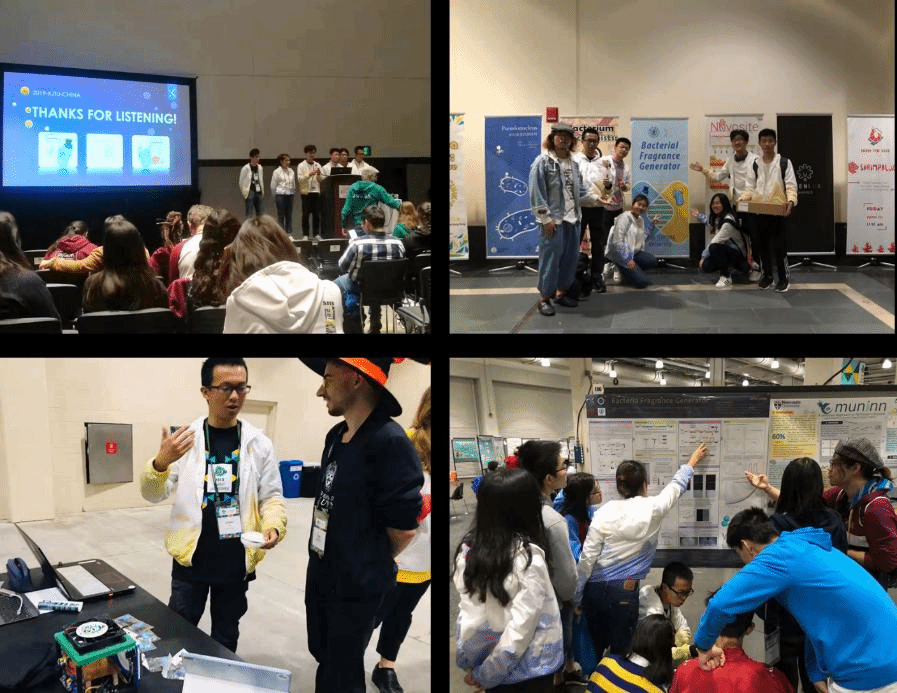 在不到一年时间内,队员自行设计基于光控开关的基因电路,实现了两种气味分子的光控选择性合成,并通过建模对其效果进行了仿真模拟。更为可贵的是,利用3D打印技术制备了小型的智能家居气味发生装置,并开发了配套的远程可控的手机APP,可实现安全、清洁、高效的气味分子可控合成和释放。队员们还开展了一系列实践环节提升了生命科学和合成生物学在大众的认可度,促进了人文精神的传播。队员们在麻省理工学院比赛现场通过wiki网页展示、海报和装置模型展示、汇报答辩等方式全方位地展示了项目的出色工作,得到了评委的一致好评。