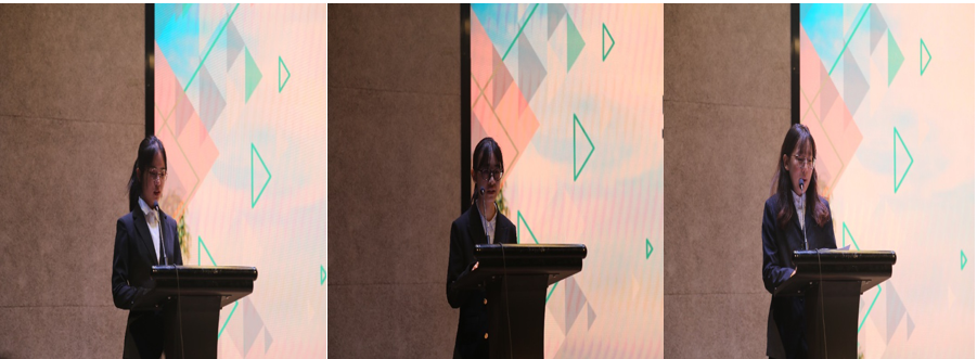 生物81班孟丽丽同学,化生81班何藻蓁同学,医电82班沈安澜同学分别代表获奖同学发言,对三八妇乐基团的支持和学校的培养表示感谢,表示今后要更加努力,热爱祖国,不忘回报社会,做优秀的大学生。