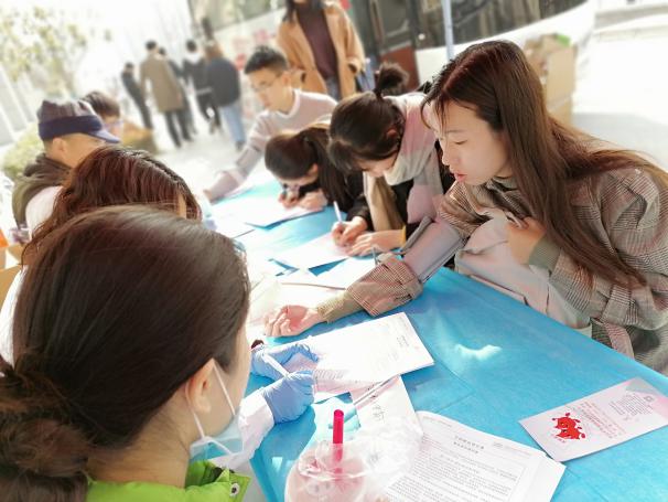 20日上午十时许,西安血液中心献血车缓缓开进创新港,“为新港献青春,为祖国献热血—无偿献血进新港”的标语展开在朗清苑、惠风苑和和鸣苑,吸引了同学们的目光。不一会儿,献血车前就排起了有序的队伍,同学们在志愿者和医护人员的引导下,依次进行信息登记、血液类型检验、静脉采血、领取献血证书等环节。
