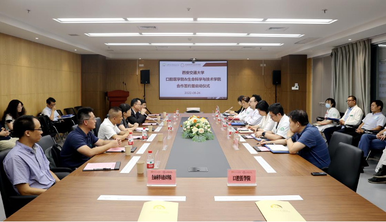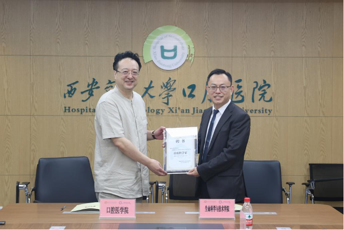 生命学院院长徐峰表示,对于生命学院的生物医学工程和生物学两个一级学科来说,最终的价值体现不仅限于文章和专利,一定还要在临床医学方面服务于人民生命健康。生命学院作为理工医交叉融合不可或缺的粘合剂,能够让医学和理、工形成最大合力。希望此次合作能促进两院形成战略性合作关系,把以口腔临床需求为主的理工医交叉融合在学校探索出一条新的机制体制,利用理工优势向医学领域拓展融合,推动生命科学与医学一体化协同发展,助力人类医学的长远建设和发展。
