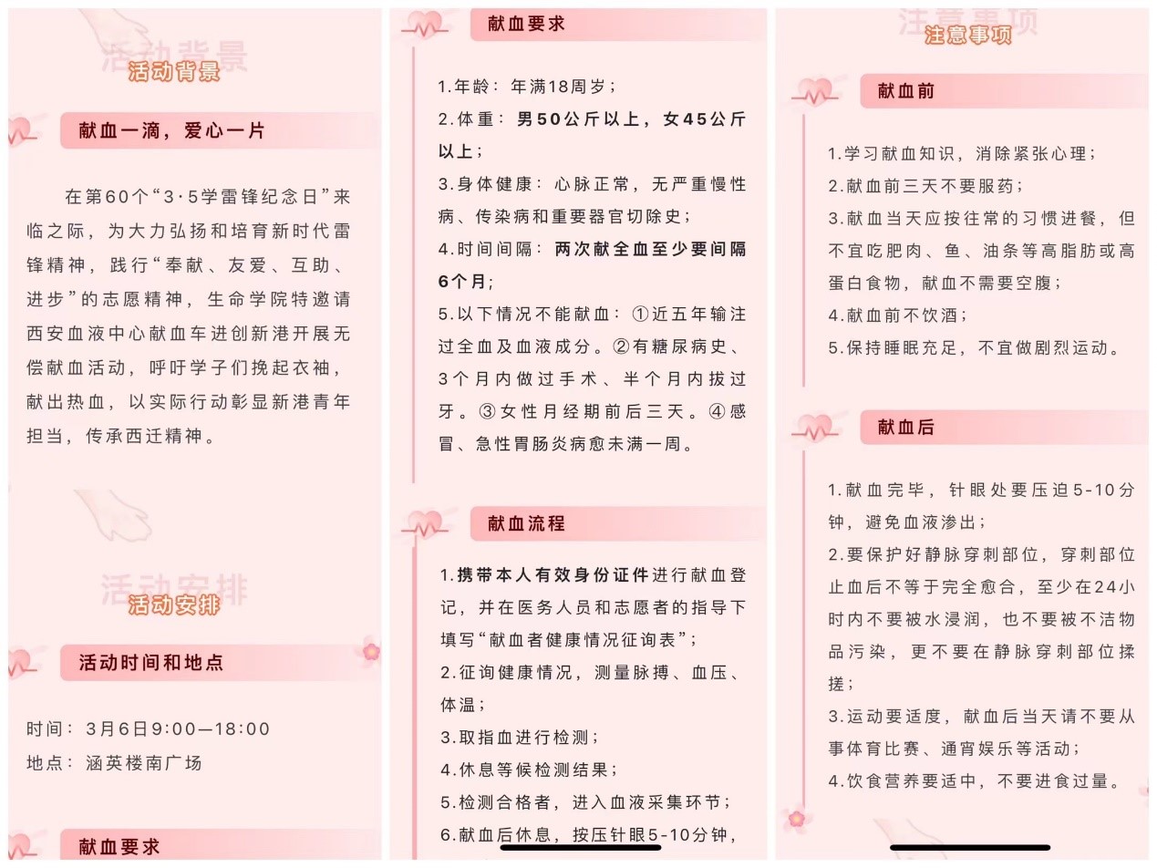 爱心始于传递,奉献在于点滴。本次“血车进校园”活动是生命学院雷锋月主题教育活动重要组成部分,自2020年起,生命学院已组织血车进校园活动4次,累计参与学生党员83人,服务献血师生近900人次。未来,学院将持续推动志愿服务活动深入开展,引领青年学生积极践行新时代的雷锋精神,用实际行动书写新时期雷锋故事。