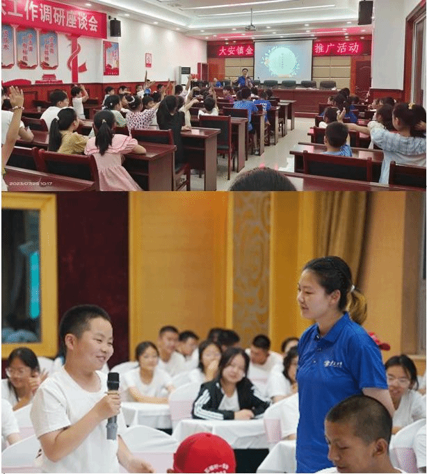 “生命之光·春蕾绽放”志愿服务队是由中国妇儿基会“春蕾阳光助学计划”受助学生主动发起的大学生志愿服务团队,通过志愿服务为社会、为妇女儿童的发展贡献力量,努力传播新时代大学生自强不息的精神。作为西安交通大学唯一入选的2023年全国大学生“防治结核 志愿有我”志愿宣讲团,“春蕾女孩们”经过周密的准备,积极策划,分成四队,前往陕西汉中、山西大同、河北邢台等地,走进多所学校,开设健康小课堂,开展结核病防治健康教育,将健康知识带入班级、宿舍,引导学生们养成良好的卫生习惯,促进结核病防治水平提升。除此之外,她们还面向中小学生、老年人积极宣讲青春期健康知识,推广普通话。在大同市,志愿服务队成员杨舒同学发挥自身专业特长,面向少数民族的中小学生讲解了第二性征发育方面的知识和正确洗脸、健康刷牙、科学洗手的步骤。什么是巴氏刷牙法?七步洗手法包含哪七步?同学们认真记忆、踊跃回答,互相帮助归纳总结,争做科学理性学习生命知识、用心维护自身健康的小主人。