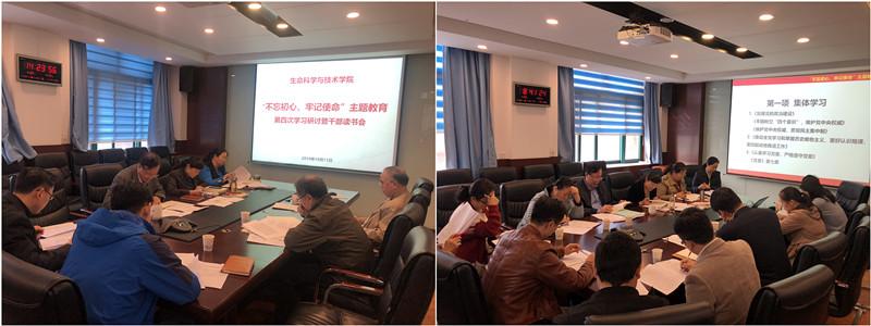 生命学院党委将学习贯彻习近平新时代中国特色社会主义思想作为主题教育的鲜明主线,将集中学习研讨、干部读书会和个人自学相结合,持续推动习近平新时代中国特色社会主义思想入脑入心。先后围绕党的政治建设、全年从严治党、担当作为、政治纪律和政治规矩、廉洁自律等专题开展5次专题交流,组织开展4次干部读书会,6名领导干部确定主题领学并作重点发言。每位领导干部立足个人分管工作,结合学习情况,从对主题教育的认识、学习感悟以及下一步工作举措三个方面出发撰写重点发言材料。