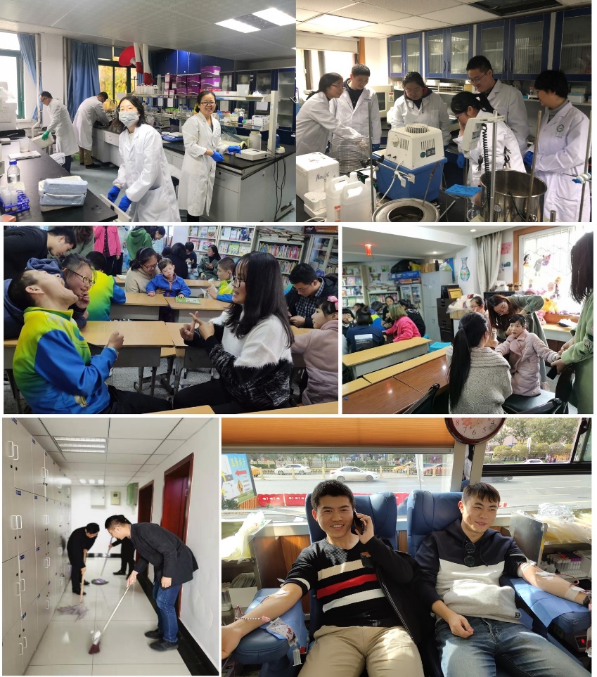 生物医学工程研究所党支部、生物系党支部、仿生工程与生物与力学研究所党支部、分仪所党支部、生物信息中心博士生党支部清扫实验室和研究室卫生,营造美好工作环境。2018级硕士生党支部组织党员义务献血,走进莲湖区星星残疾人阳光家园,将关爱传递给自闭症儿童。过志愿服务活动,强化师生党员服务意识,践行初心使命,筑牢使命担当。