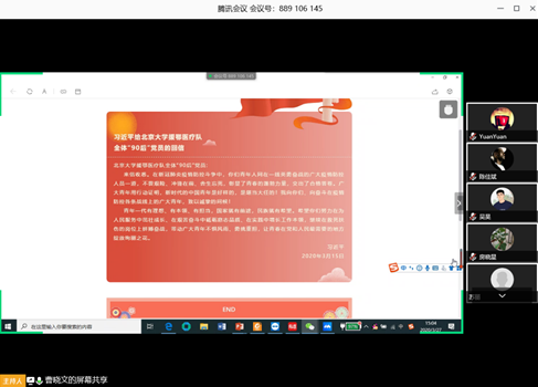 3月27日下午,生物信息中心党支部顺利召开三月份组织生活会,支部全体党员通过腾讯会议参加此次线上组织生活会。本次会议主要围绕学习习总书记的两封回信及职业规划与复工后科研工作安排这几部分展开。