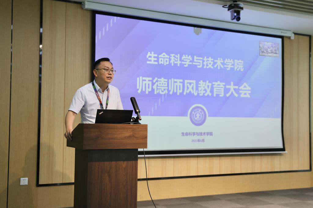 6月29日,生命学院召开师德师风建设主题学习大会,旨在深入贯彻党的二十大精神,将学习贯彻习近平新时代中国特色社会主义思想主题教育和教师队伍建设结合起来,践行立德树人根本任务,推动学院教师师德师风长足进步,促进学院高质量发展。会议由学院院长徐峰主持。