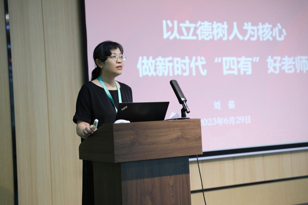 生命学院党委书记刘茹做题为“以立德树人为核心,做‘四有’好老师”的主题报告。刘茹强调,党的二十大报告指出,我们要坚持教育优先发展、科技自立自强、人才引领驱动,加快建设教育强国、科技强国、人才强国。要建设教育强国,办好人民满意的教育,就要把加强教师队伍建设当作最重要的基础工作来抓。师德师风建设关乎党对学校的领导、关乎全面贯彻党的教育方针,关乎中国特色社会主义事业薪火相传,广大教师要提高对师德师风建设重要性的认识,坚持为党育人,为国育才使命担当。