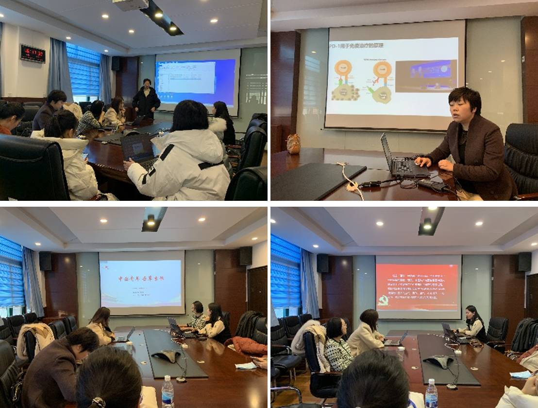 卢晓云以“党性之内驱力”为主题做了微党课分享,通过阐述中国共产党百年奋斗历程各个阶段取得的成就,指出成绩的取得来源于中国共产党的内驱力,对应人才培养工作,核心和基础也是内驱力。卢晓云谈到,教书育人过程中要引导学生有深度地思考自我发展和个人社会责任感,辩证的看待外驱力,平衡外驱力和自我内驱力,杜绝做“空心人”。许丹以PD-1药物的发展史为线索,介绍了中国医药研发创新的艰苦奋斗史以及国家医保谈判的制度保障,从而引出共产党领导的制度优越性,通过实例引导党员树立民族自信和制度自信。董楠从百年前出版的《新青年》杂志切入,表示杂志虽已泛黄变旧,但其中宣传的思想,直至今日依然是我们弥足珍贵的文化传承和精神力量。作为青年人,应立足当下,继续发扬交大老教授们的西迁精神,积极参与创新港的建设,书写当代青年人的青春篇章。崔莉讲到,过去一百年,中国共产党向人民、向历史交出了一份优异的答卷。现在,中国共产党团结带领中国人民又踏上了实现第二个百年奋斗目标新的赶考之路。新时代的中国青年要以实现中华民族伟大复兴为己任,增强做中国人的志气、骨气、底气,不负时代,不负韶华,成为实现中华民族伟大复兴的先锋力量。